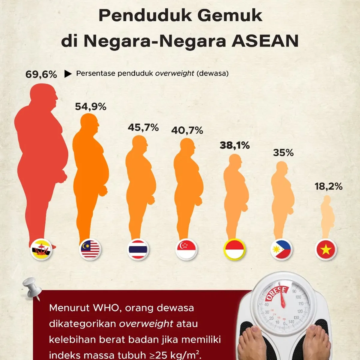 Data terbaru dari Food and Agriculture Organization (FAO) mengungkapkan bahwa Indonesia kini masuk dalam jajaran negara dengan tingkat obesitas tertinggi di kawasan Asia Tenggara. Pada tahun 2022, tercatat 21,6 juta orang dewasa di Indonesia mengalami obesitas. Angka ini melonjak drastis dibandingkan tahun 2002 yang hanya sekitar 10 juta orang.
