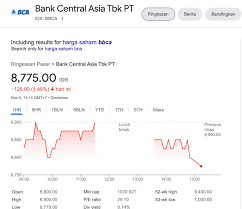 Saham BBCA mengalami tekanan di pasar pada awal sesi perdagangan Selasa (19/8/2025), turun sekitar 2,01% ke level Rp 8.525 pada pukul 09.05 WIB. Bursa mencatat volume transaksi mencapai 20,96 juta saham dengan nilai transaksi sekitar Rp 182 miliar. Penurunan ini melanjutkan tren pelemahan yang terjadi pada pekan sebelumnya, meski fundamental bank tetap kuat.