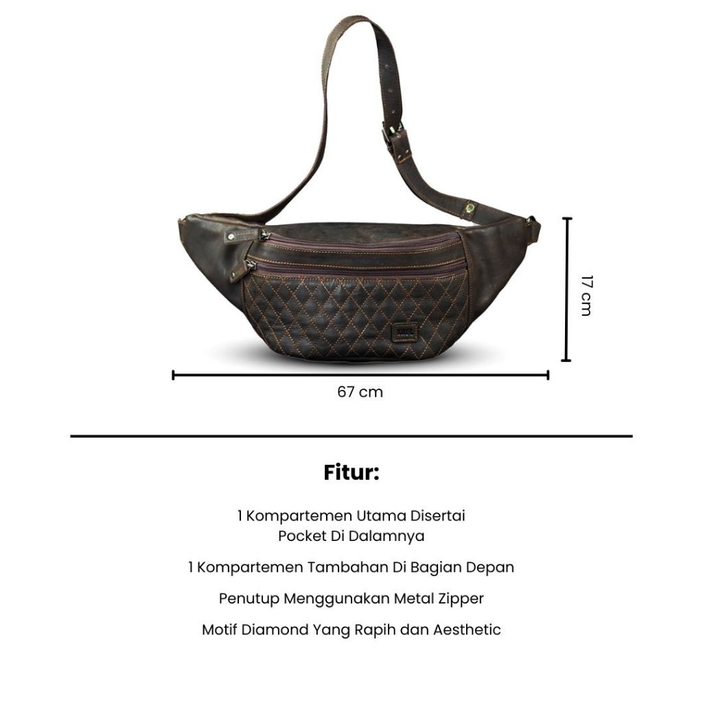 Diamond Leather Waist Bag. Sebuah Tas Selempang Kulit Asli Dari Kael Leather Goods, Merupakan Aksesori Praktis Dan Bergaya Untuk Membawa Barang Bawaan Anda Dengan Kemudahan. Dibuat Dari Kulit Sapi Asli, Tas Ini Tidak Hanya Mengutamakan Fungsionalitas, Tetapi Juga Memiliki Tampilan Yang Klasik Dan Elegan.