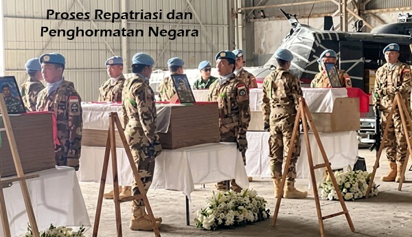 Pemerintah Indonesia segera melakukan proses repatriasi sebagai bentuk penghormatan terakhir. Jenazah para prajurit dipulangkan dari Beirut ke Indonesia setelah upacara militer di Bandara Internasional Rafic Hariri. Kementerian Luar Negeri memastikan proses pemulangan berjalan aman meski terkendala kondisi konflik. Selain itu, negara memberikan penghormatan penuh kepada keluarga yang ditinggalkan. Dukungan moral dari masyarakat Indonesia juga menjadi bagian penting dalam mengiringi kepulangan para pahlawan bangsa.