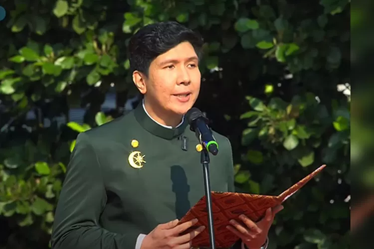 Kini, Windah mengenakan beskap hijau tua lengkap dengan pin, menunjukkan sisi formal dan khidmat saat memimpin upacara Hari Kemerdekaan RI ke-80 di Lapangan Blok S, Jakarta Selatan—acara yang turut melibatkan kreator-kreator muda lainnyaBerbeda dengan citra biasanya yang sering tampil jenaka, kali ini ia tampil serius di depan generasi muda dan rekan kreator lain.